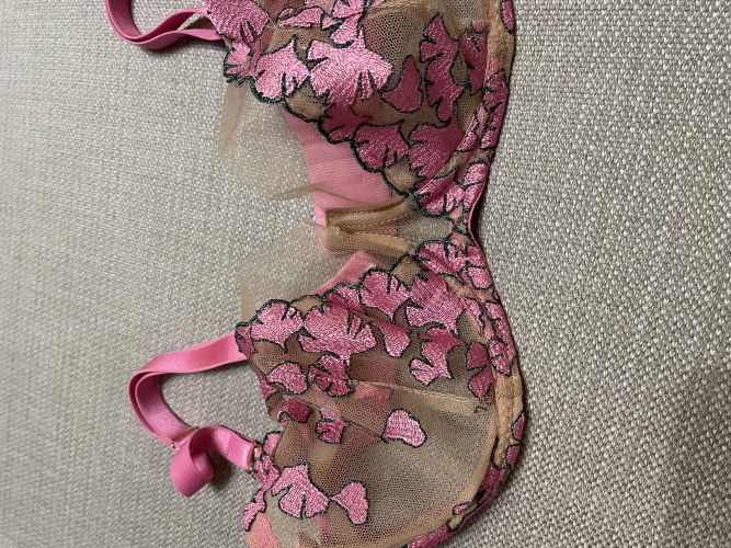 Biustonosz miękki French Flowers to kwintesencja delikatności i elegancji, idealny dla małych i średnich biustów. Wykonany z subtelnego różowego haftu z zielonym obrzeżem, zachwyca romantycznym wzornictwem. Górna część miseczki, uszyta z lekkiego tiulu, nadaje konstrukcji zwiewności i podkreśla naturalny kształt biustu, jednocześnie eksponując go w głębokich dekoltach.